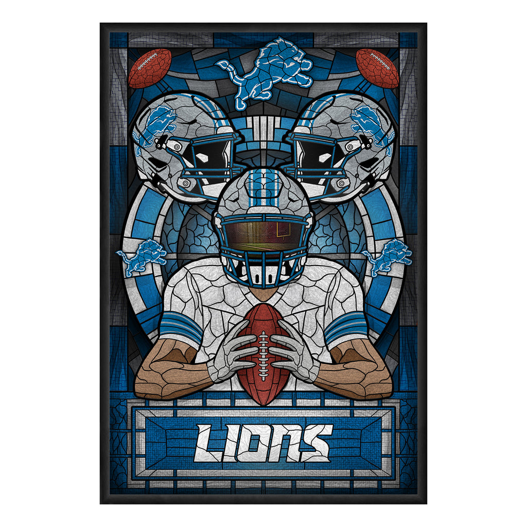 The Team Pride Stained Glass Art Print fuses the timeless aesthetic of stained glass with the passion of the gridiron. Featuring a bold color print that mimics the craftmanship of stained glass, it’s printed on high-quality paper and finished with a black wood frame. Ready to hang, this artwork is the perfect blend of sports devotion and artistic flair. This is not actual stained glass.