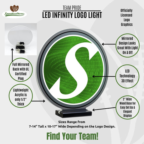 Transform your fan cave, home, or office with the mesmerizing Team Pride LED Infinity Logo Light. Your team’s favorite logo will light up and stretch into infinity, creating an otherworldly 3D experience that captivates every fan in the room! Its lightweight materials, sturdy base, and thin profile design makes it a perfect fit on any desktop, mantel, bar, or console.