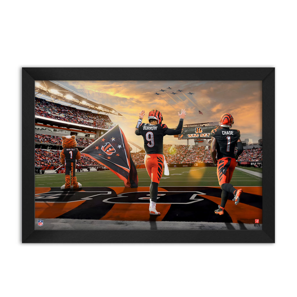 Celebrate the top players on your favorite team with officially licensed framed art. Created with the biggest fan in mind, this wood framed textured art print is sure to make any room show your Team Pride. Ready to hang and ideal for the home, office, or fan cave. A great one-of-a-kind gift for the super fan in your life.
