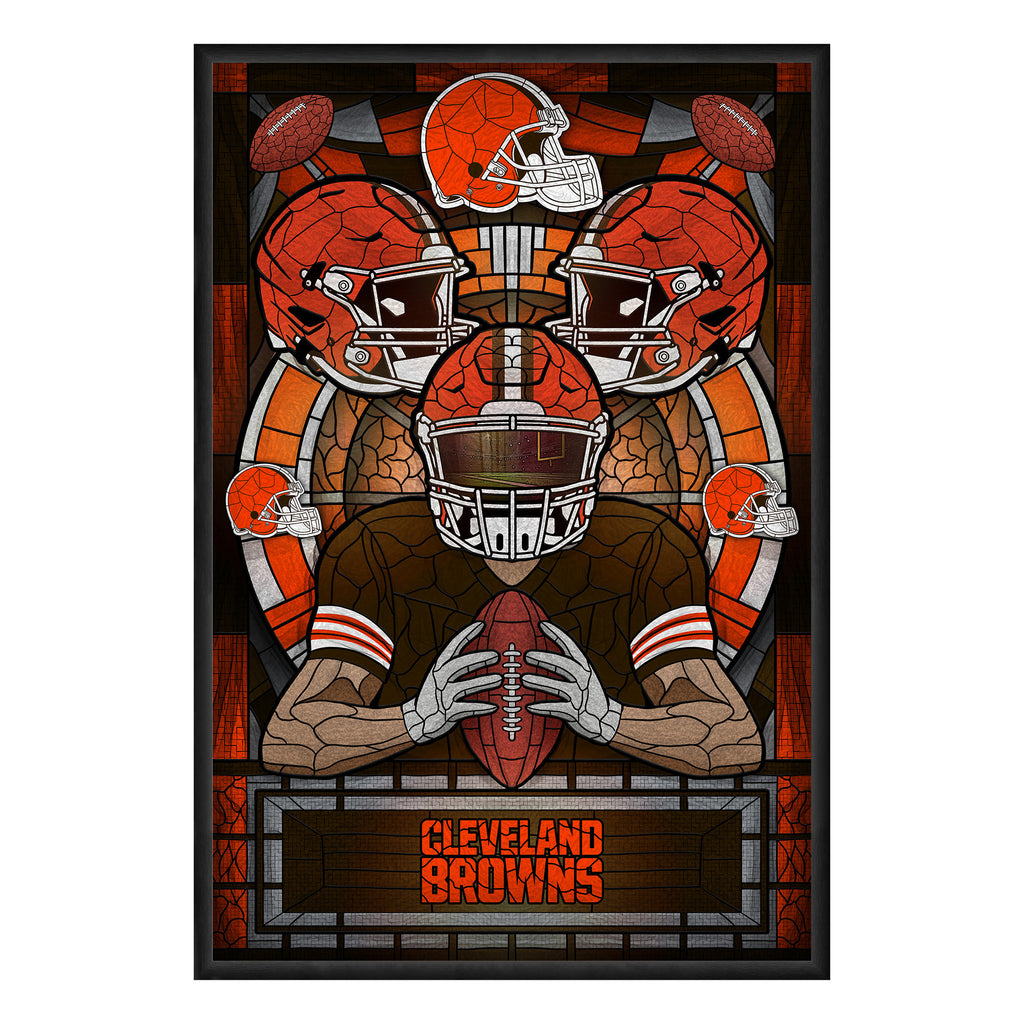 The Team Pride Stained Glass Art Print fuses the timeless aesthetic of stained glass with the passion of the gridiron. Featuring a bold color print that mimics the craftmanship of stained glass, it’s printed on high-quality paper and finished with a black wood frame. Ready to hang, this artwork is the perfect blend of sports devotion and artistic flair. This is not actual stained glass.