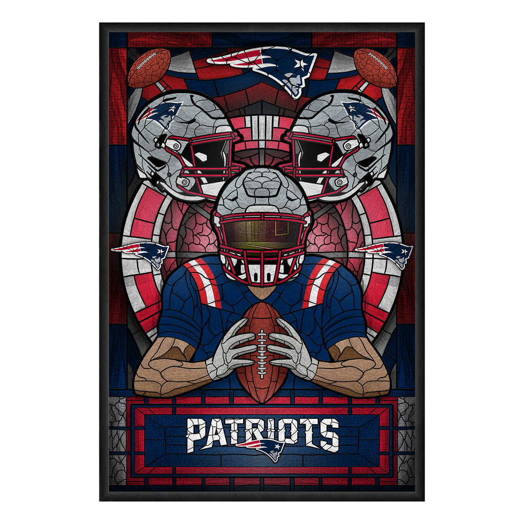 The Team Pride Stained Glass Art Print fuses the timeless aesthetic of stained glass with the passion of the gridiron. Featuring a bold color print that mimics the craftmanship of stained glass, it’s printed on high-quality paper and finished with a black wood frame. Ready to hang, this artwork is the perfect blend of sports devotion and artistic flair. This is not actual stained glass.